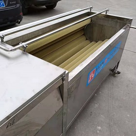 毛輥清洗機又稱毛輥刷清洗機、毛輥噴淋清洗機、去皮清洗機,主要用于貝殼類、根莖類果蔬的清洗去雜,工作原理是利用毛輥的轉動,物料間的相互摩擦,來去掉附著在被清洗物上的泥土、雜質,用毛輥絲較硬的毛輥可直接將土豆、芋頭等需要去皮工藝的物料進行去皮,利用噴淋式水流沖擊清洗,清除雜質。